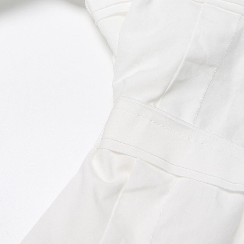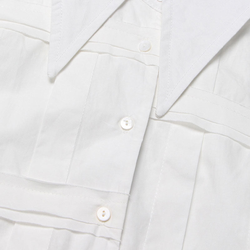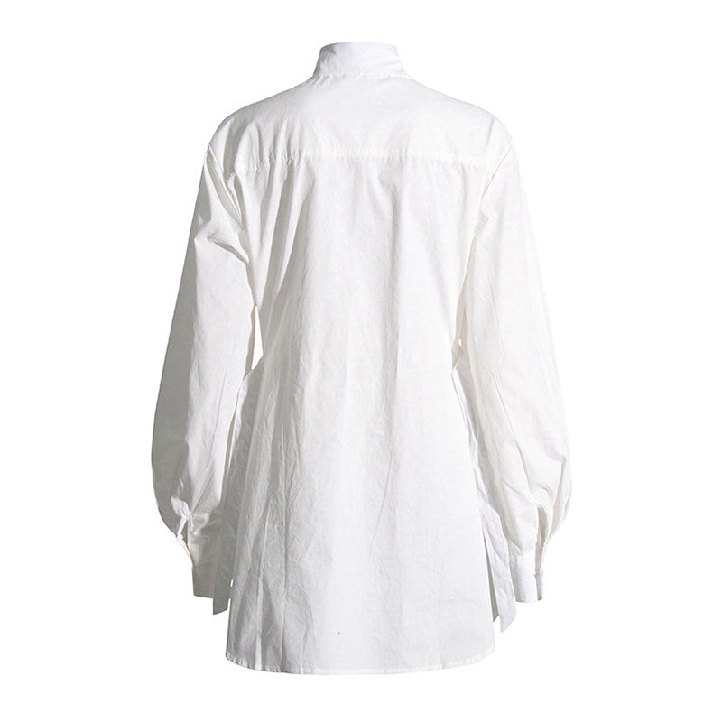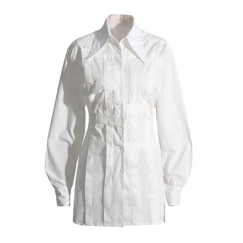 Classic shirt with so many details that we love! This season. meet our new designer shirt collection to update your style. The white shirt is in a longline silhouette with a chic pointed collar. long sleeves and a row of buttons to the front. The braided design makes it possible to distinguish your own personalized style from others. The detachable straps on the back allow you to sash and define your waist. Keep the look easy and casual with biker shorts and trainers for a model off-duty look.