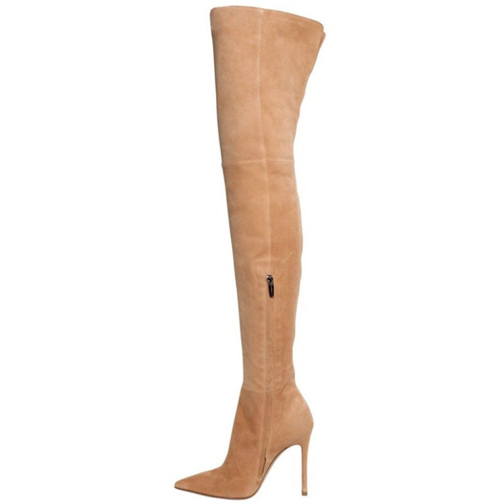 Stylish Suede Pointed Toe Over-knee Stiletto Boots - Camel