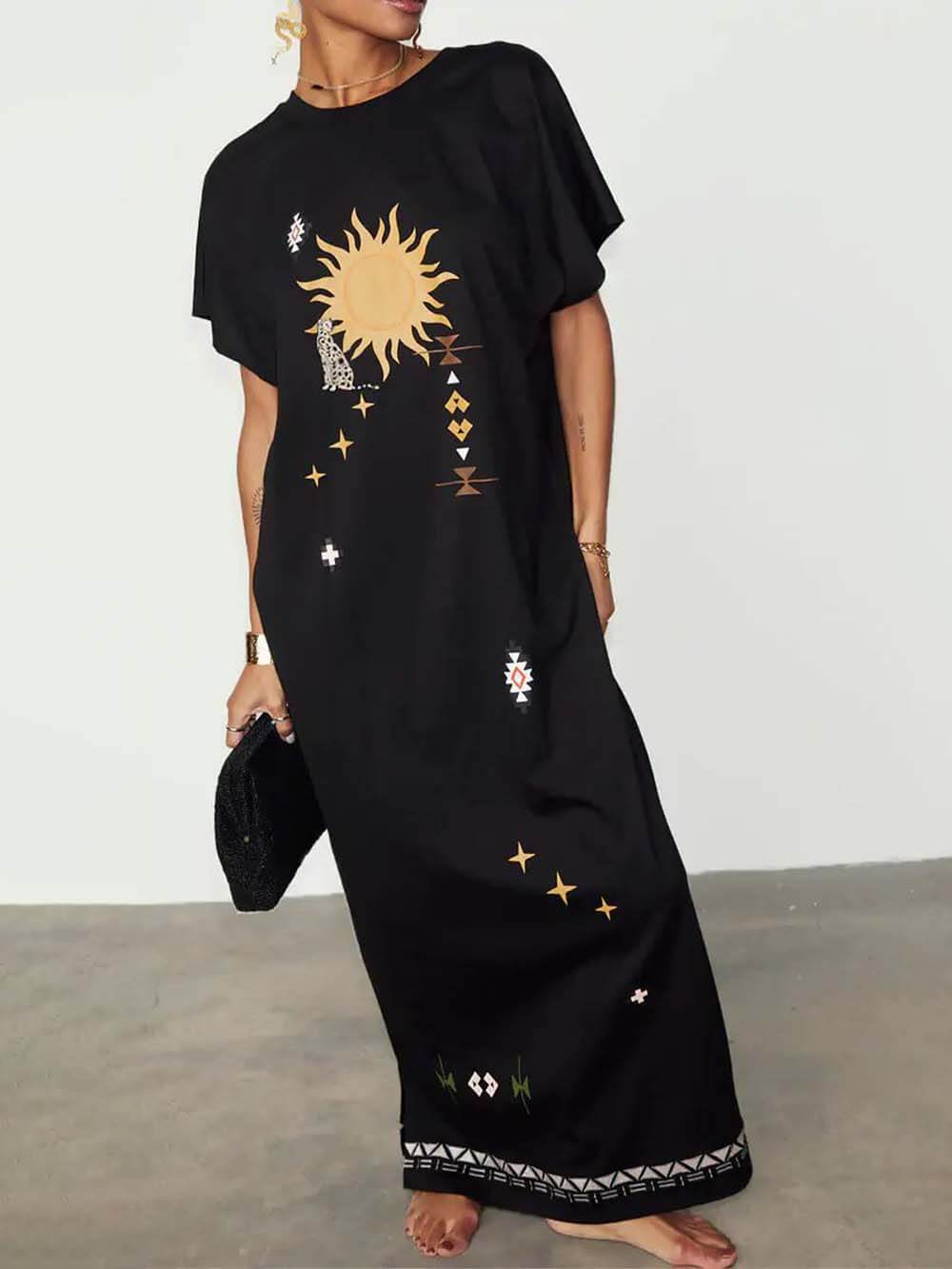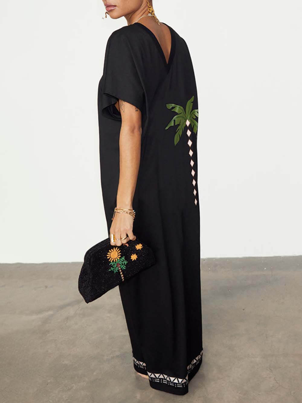 Made from premium fabric. this dress is soft and breathable for all-day wear. The unique palm print on this dress adds a touch of personality. while the loose fit ensures a comfortable fit.