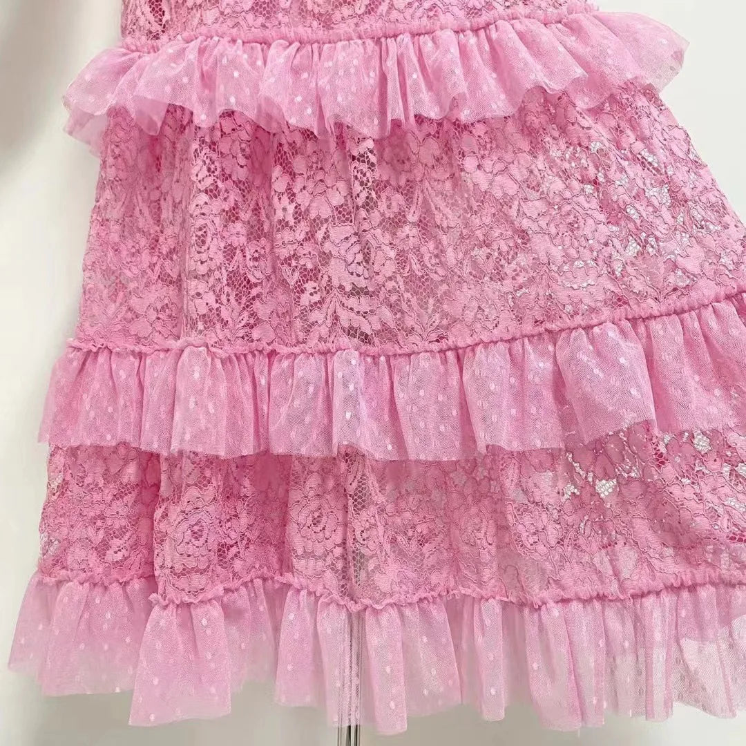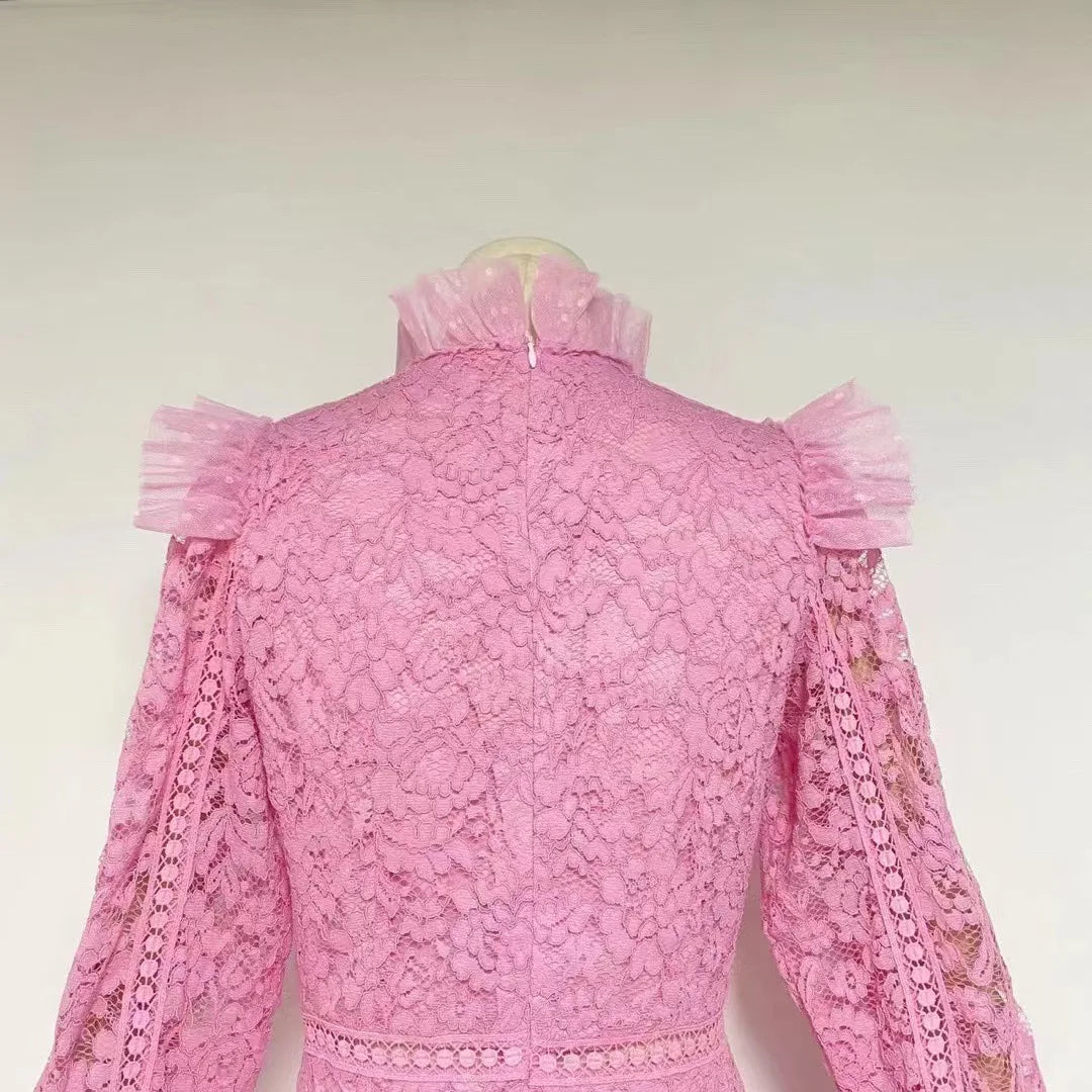 This elegant Textured Maxi Dress with Long Sleeves features delicate lace. ruffles. mesh details on the shoulders and neckline. and a zipper closure. all combined to provide a chic look. The maxi length and round neckline complete the design for a graceful silhouette.