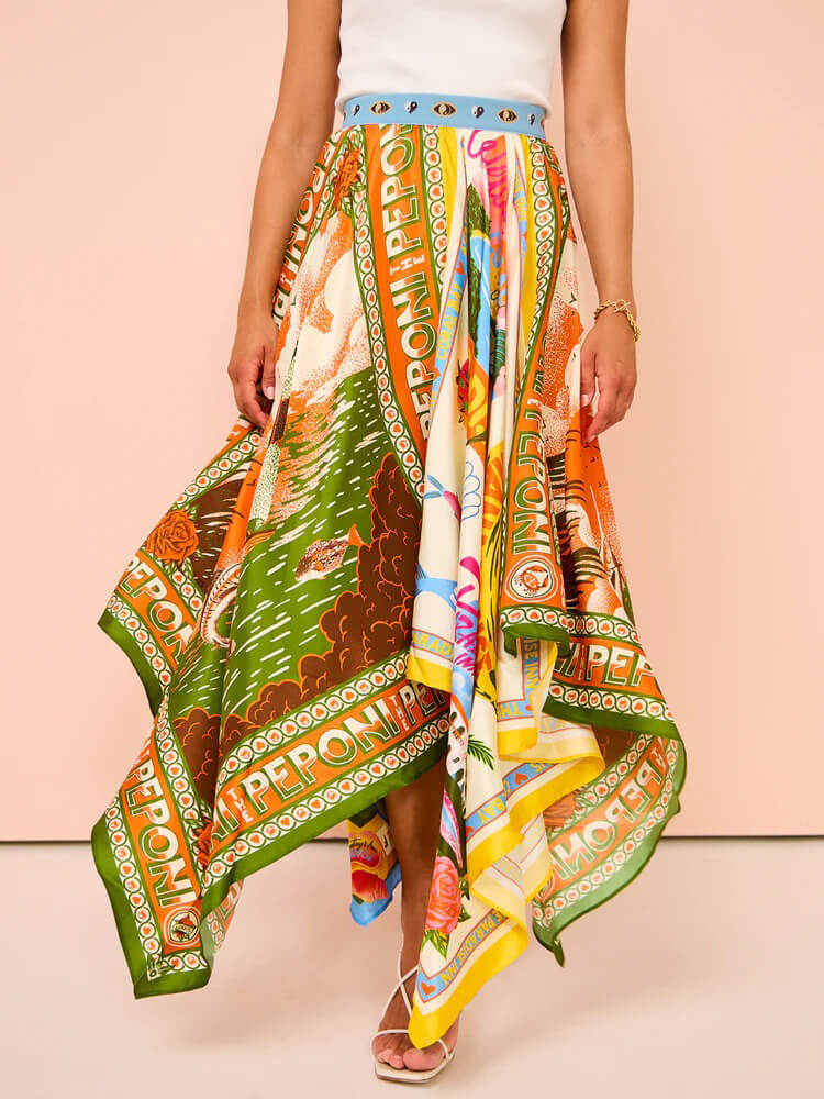 Made from high-quality fabric. this skirt is soft and breathable for all-day wear. Â Â Â It features a unique floral print and an irregular hemline that adds personal style. while the long skirt ensures comfort.