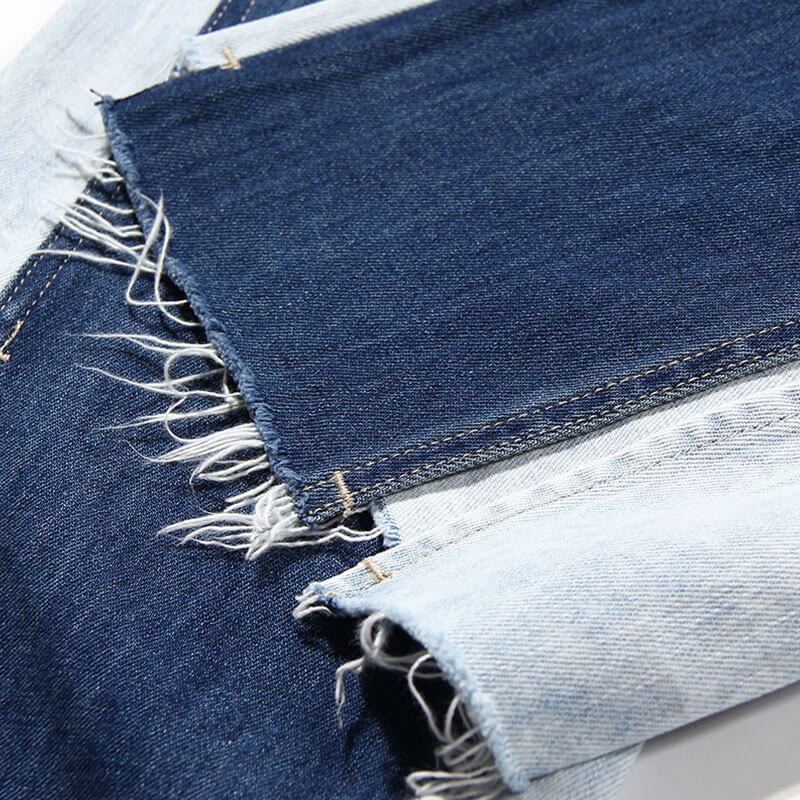 Unique Two Tone Raw Hem High Waist Straight Leg Spliced Jeans