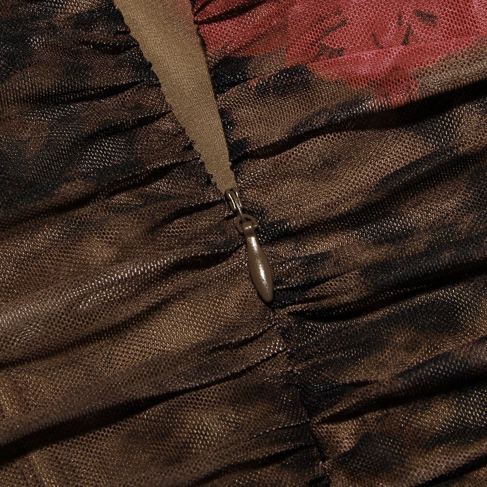 Ā This two-layer maxi dress is crafted with a mesh print and adjustable straps.