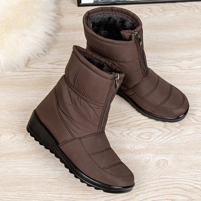 - Thick Plush Winter Ankle Boots: Front Zipper