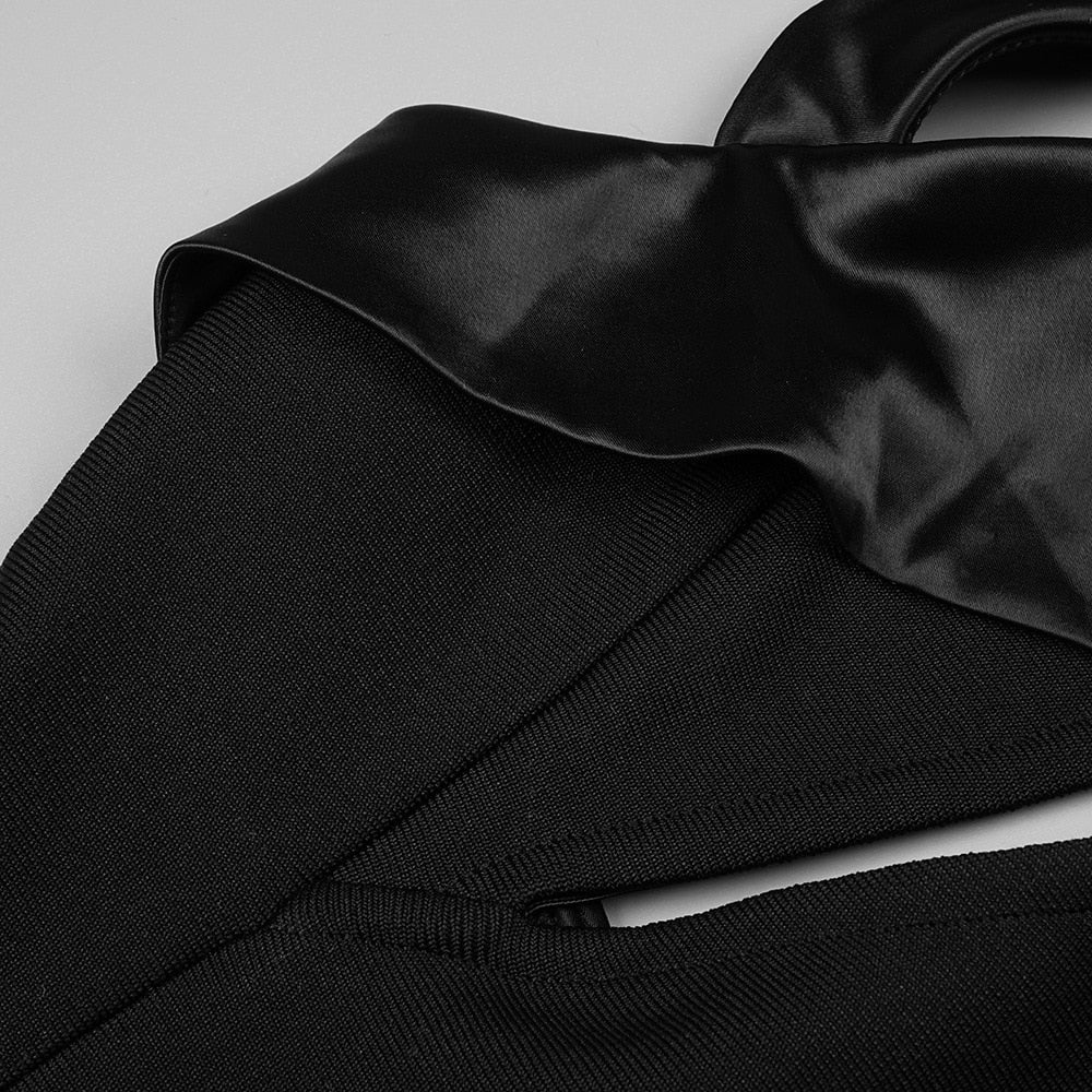 AYNO JACKET COLLAR HOLLOW OUT BLACK MINI DRESS